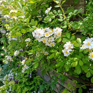 「今日のお花」がノイバラだったので、本日2回目の投稿です。 我が家のノイバラは勝手に生えてきたので完全に野生のノイバラです😁 たまたま垣根の下だったのでそのまま育てる事にしました。(因みにもう1株同じ並びにあります) よく伸びるので誘引が少し大変なのとアブラムシがよく付くので殺虫剤を使って退治してますが、それ以外は管理の楽なバラです。 今年はスイートピーのニンバスとコラボさせてみました。 ちょっと大人の景色ができました😉