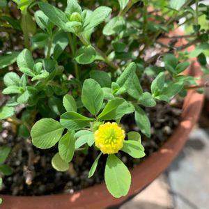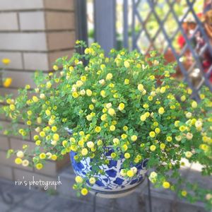 クスダマツメクサ 今年もかわいく咲いてくれました😊 園芸店ではラッキークローバーと言う名前で並んでいることもあります🍀 黄色いポンポンがかわいくて 最初は種を譲ってもらって蒔きました その後はこぼれ種で毎年この鉢で咲いています🌱 先日うちに来た人が「うまく咲かせてる✨」と褒めてくれましたがホントに何もしてないの😌 種まきも植え付けも摘心もしてなくてこの状態です とっても良い子です💛