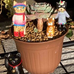 おはようございます。☀️ 初めての*ニャンニャン祭り*参加させていただきます。 いつも、22日過ぎてから、しまったぁ〜😅と思うタイプで今日は忘れてなかったわ。\(^o^)/ でも、我が家には猫がいないので、 いつだったかお出かけ先で見つけた猫ちゃんを、ご一緒させてみました。 今日から年末ジャンボも始まります。🎯 黒猫の招き猫ちゃんも待ってるよぉ〜♪ こちらの七福神は、GSメイトのママ友さんに頂いたものです。 小さな赤ちゃん発見👀👶🏻 大きくなるのが楽しみです♡ 🏷ニャンニャン祭り 🏷多肉にチューズデー♡