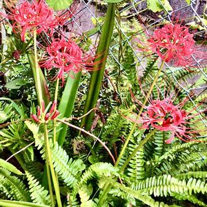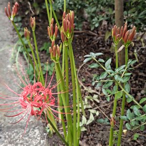 こんにちは😃☔️ 今日のお花 彼岸花 (曼珠沙華)です🥰👍 我が家の裏庭に咲いている彼岸花です🥰👍 毎年この時期になると咲いてくれます。 ♪(๑ᴖ◡ᴖ๑)♪❤️❤️❤️ ⭕️ 彼岸花とは、ヒガンバナ科・ヒガンバナ属(リコリス属)の多年草で球根植物です。道端や人里に近い川岸、田のあぜ道などに群生し、夏の終わりから秋にかけて咲きます。 彼岸花をよく見てみると、高さ30cm~50cmの長い茎に大きな花がポツンと咲いています。では彼岸花には葉はないの? いえいえ、ちゃんとあります! 彼岸花の大きな特徴は、一般的な花と少し違うその生態。彼岸花は球根から花が出てきて、その花が枯れた後に葉が成長します。だから葉がない状態で花が咲いているのです。花と葉を同時に見ることができない事から「葉見ず花見ず」と言われ、昔の人は恐れをなしたとか。 実は冬から春にはちゃんと葉が繁り、花をつけない寒い季節にしっかり栄養を球根に貯えているのです。多くの植物は春に芽を出し、夏に葉を繁らせ秋に枯れますが、彼岸花はその逆。冬に葉を繁らせ春に枯れ、秋に花を咲かせます。