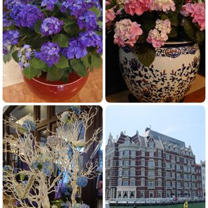 ハウステンボスあじさい祭り➁ 泊まったホテルのロビーには、有田焼の壺にあじさいが植えられています🎵