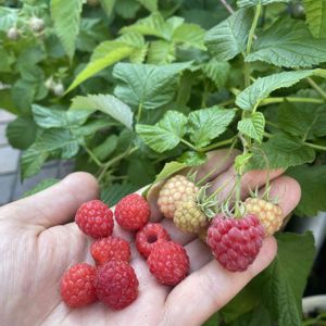 2024.06.03 ラズベリーが順次色付いてきて収穫が始まりました🍓 美しいルビー色がたまりません。 ラズベリーは一斉収穫では無いと初めて知りました。 現在一苗に50粒ほど実ってますが収穫が段々なので少し少なく感じてしまいました。 ですが味は素晴らしく、甘くて程よい酸味が美味しいです。 自分で育てたので安心ですしより美味しく感じますね。 サッカーが増えて来たので来年は株分けして沢山収穫出来るようになりますように。