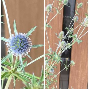 エリンジウム.プラナム.ブロウカッペ💙🏷 PEKOの庭で2年目のエリンジウム、去年3株植えて花芽は1本しか出なかったけど、今年は2本💙💙1歩前進😊 でも〜っ🥺ヒョロヒョロ90cm、色も薄〜い青❓ 来年は花芽3本出るといいなぁ💙