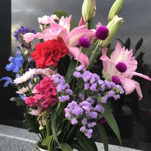 3日早いのですが、友人のお墓参りへ行ってきました すでにお花たくさんあったので、「ケイトウ」だけ挿してきました。切り花ミックスで買ったのですが、 「久留米鶏頭」かな? 東京都 11月4日撮影