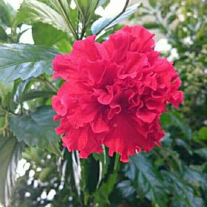 ☀7月最後の日☀ 暑い~暑すぎる💦 クーラーの部屋から 出たくない😅 今朝 庭に出たら 咲いてました😁🎶赤い花🌺 ハイビスカスの仲間なのかな❔ 葉っぱは ハイビスカスの葉っぱと似てる🍃