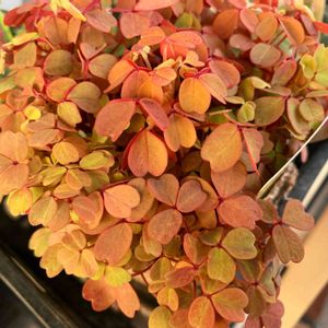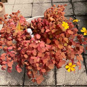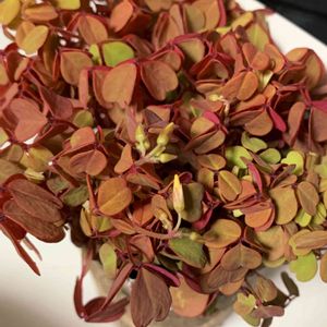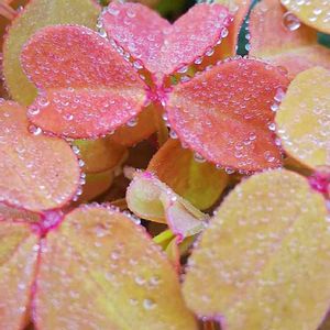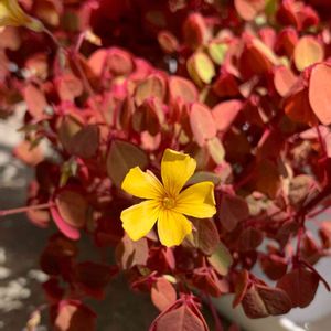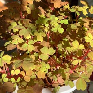 朝は葉っぱが開いて元気。 色合いが秋色なオキザリス。