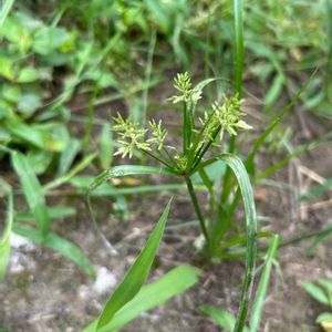 コゴメガヤツリ 旅行先でお散歩していたら、 道端の空き地のようなところに、 咲いている植物を見つけました。 高さ、15センチくらい。 茎がすーっと、立ち、一番上に、長くて細い葉が3枚、開くようにありました。 その根本から、お米の粒が集まっているようなお花が、咲いていました。 GSで、カヤツリグサを見たことがあったので、カヤツリグサかもと思い、写真を写しました。 宿へ帰って調べると、 コゴメガヤツリ?似ています。 GSの投稿で調べて、悩んで悩んで。詳しい先輩に聞きました。 その後、コゴメガヤツリかもと教えてくださった方もいらして、そうかなと、期待したりして(笑) また、出会えたら、よく見比べて観察したいと思っていたら、 詳しい先輩から、これは、コゴメガヤツリだろうとの、連絡がありました。 5枚の写真の中で4枚目がよくわかるそうです。 コゴメガヤツリは、小穂の鱗片は黄色。先は尖らず円頭。 カヤツリグサは、小穂の鱗片は黄褐色、先が突き出て尖る。 のだそうです。 これは、丸いのですね。 すっきりしました。でも、次に逢った時、すぐに、わかるか、どうか。 やっぱり、引き続き、また会えることを念じて、観察継続にします。 9.28📷 nikoさん すずはなさん ありがとうございます。