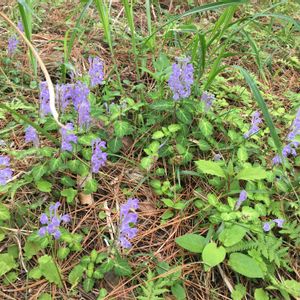 オカタツナミソウ(丘立浪草) シソ科タツナミソウ属 丘陵地の林の周辺に生えています。 同じ向きに花を付けます。 花の咲き方が波が立っているように見えることからタツナミソウと名付けられました。