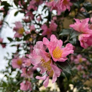 今日のお花🏷𓈒𓏸︎︎︎︎サザンカ🌸 急ぎ足🚶♀️で駅に向かういつもの通勤路。日差しを求めてブロックの上に枝葉を張ったサザンカが満開🌸 数日後、隣合った濃いピンクの八重咲きも開花 11月18日22日📸武蔵野市西久保付近