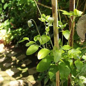 オクロレウカ 木立生のクレマチス 及川フラグリーンさんから昨年やってきました💚🤎今年初めて咲いた♬ 何故か、2ポットでしか販売されておらず。。。。もう一鉢🪴います😊 年を重ねる毎に少しずつ花数も多くなるそうですよ💚