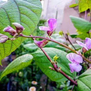 今日も☀✨️最高34℃🌡️予想💦 北海道は大変そうですね📺️😱 🙏再投稿、写真増やしました🙇 😃 福岡の🍀花友さんから頂いた「ドリチョスラブラブ」の種●。 冬前に、スイートピーと一緒に種まきが… 失敗😭 。芽は🌱出たのですが、雪❄で⤵️消滅😲💧。 …春になりひとつ🌱見たことのない葉っぱ🌿が出ていて これ🔍️🧐❓&🙌💕。大切に畑に植え替えを(人 •͈ᴗ•͈) 🔍️【ドリコスラブラブ➡️ドリチョス・ラブラブは『藤豆』の仲間のマメ科のツル性一年草です。品種名は「ルビームーン」として流通しています。 ドリチョス・ラブラブの種は春にまき(😂💧)、夏にピンクの花が咲いた後、深い紫色の豆🫘💜ができます。ツル性でとても生長力が強く、地植えにすると5m以上伸びるため、夏場のグリーンカーテンとして利用できます。深い紫色のさやの状態は、切り花としても流通しています】 ひとつの種●から🌱、今は畑植えで畝もあり2m高📏。ひとつ🌱で充分に⤴️ 葉もモリモリに伸びて ちょっと散髪✂️もしました。5mは到底無理なので 程よい所で✂️止めてはいます。 早朝には蝉の鳴き声も👂️。例年…、今頃が梅雨明けのはず。蝉は📡スゴイなぁ〜と、初見のドリスコラブラブを…LOVE🫶💖📱しつつ 毎日の水やりが 億劫😵💫💦になり始めた朝夕の水やりも、楽しみが増え⤴️💕元気がでました。種まで見届けたいです🤲💜 ありがとうございます🍀「ぷりんちゃん」さん🤗