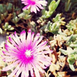 ミックスシードを蒔いた場所に生えてたマツバギク🌼ショッキングピンクが華やかです✨