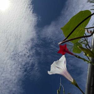 仲良く見上げる秋の空🙌 今年は何故か赤花ルコウソウがこんなところに😅数年前に赤と白の両方の種子を頂いたのに何故かほぼ白だけになってしまい💦去年はどこかの鉢に一株だけあったような🤔この場所にはなかったはずなのに😅 やっぱり赤は可愛いね😄💕 ④⑤やはりヘンテコに💦 GSさん、なんとかしてください😅
