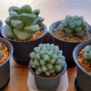 窓辺のハオルチアたち。 ちょっと徒長気味。 なんとか対策しないと。