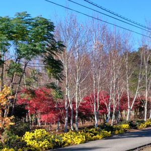 私の散歩コース 秋も深まり、モミジが鮮やかに紅葉してきました。 春夏秋冬、散歩していますが、この時期が一番華やかです。 ①親しくしている農家さんの敷地の一画です。 白樺の黃葉も終わり、白い木肌が目立ちます。真っ赤なモミジと黄色の小菊で、素敵な風景になりました。 ②〜④モミジが真っ赤に色付きました。 ⑤ドウダンツツジの紅葉と4月に咲くサクラの木です。この近くにはシダレザクラやヤエザクラもあり、春も楽しみです。 🏷️木曜日は木 に参加させていただきます。