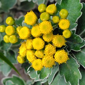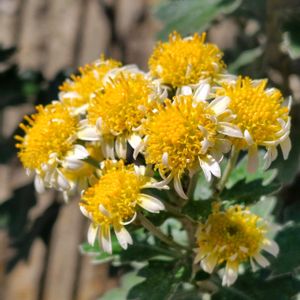 イソギク キク科キク属 多年草 海浜植物の1つ 和名は磯に生えるキクであることに由来する。 自生は少なく、観賞用に植栽される。 花期10〜12月 草丈は30〜50cm。 葉は厚くて倒披針形、倒卵形で、上半分のみ浅い切れ込みが入る。 表面は濃緑色で葉脈はほとんど目立たず、裏面は銀白色の毛が密生するが、葉の縁が表側に反り返っているため、一見すると葉に白い縁取りがあるように見える。 花は多数の小さな筒状花からなり、花弁のような舌状花はない。 花言葉は「感謝」「大切に思う」 🏷️金曜日の蕾たち に参加させていただきます。