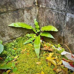 コタニワタリ チャセンシダ科 原産地 日本を含む北半球の温帯 ブロック塀の片隅にコタニワタリが… 日陰で湿気が保たれやすいのでしょうね。 ブロックに胞子が飛んで居場所を見つけたのでしょう。🌱🌱🤗 鉢植えにして,観葉植物にもいいですね。🪴 草取りしてて見つけました。 😮 日本海側で多く見られます。🥰