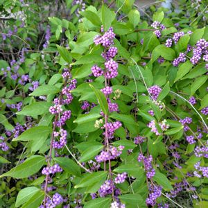 今日のお花 ①〜③コムラサキ シソ科ムラサキシキブ属 落葉低木(高さ1.5mほど) 本州(青森県を除く)、四国、九州に分布 湿気の多い山野に生育するが、庭木として植栽される。 花期6〜8月 雌雄同株 淡い紅紫色の小花が10〜20輪集まって咲く。 果期9〜11月 果実は直径3mmほどで多数が密生する。 葉は長さ2〜8cmの長楕円形で両端が尖り、枝から対になっている。 葉はムラサキシキブより小さい。 ④⑤ムラサキシキブ シソ科ムラサキシキブ属 落葉低木(高さは3mほど) 北海道北東部を除く日本各地に分布 山地の林、道路脇の藪などに見られる。 花期6〜7月 花は直径3〜5mmと小さい。 葉は長さ1〜12cmの長楕円形で対になり、葉先は尾状に尖る。 秋が深まると黃葉し、葉が散った後も枝に残る。 ①コムラサキ 9/7撮影 ②コムラサキ 青い実 8/1撮影 色付き始めの実 8/21撮影 ③コムラサキの花 7/1撮影 ④ムラサキシキブの実 11/23撮影 ⑤ムラサキシキブの花 6/8撮影