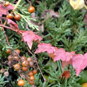 天然のクリスマスツリー (1)カイズカイブキ ヒノキ科ビャクシン属 常緑針葉小高木 海辺などに自生するイブキ(ビャクシン)の園芸品種 北海道以南の各地で、一般家庭の生垣として植栽されている。 葉は長さ1〜5mmの鱗状である。 (2)ヘクソカズラ アカネ科ヘクソカズラ属 つる性多年草 日本全土の藪や道端などに自生する。 草藪や樹木、フェンスなどに絡みつく。 花期7〜9月 果実は直径6mmほどの球形で、熟すと緑色から黄褐色、薄茶色になる。 (3)ナツヅタ(ツタ) ブドウ科ツタ属 つる性落葉木本 別名アマヅラ、モミジヅタ 北海道、本州、四国、九州に分布 山の林や岩肌にふつうに自生する。 木の幹にびっしり張り付いているほか、建物の壁や塀の一面をおおうことも多い。 葉の形は変異が多い。 切れ込みのない葉、掌状に浅く裂けるか、完全に分裂して複葉になるものなどがある。 紅葉し始めは、紫色を帯びやすく、緑色から紫色、赤色、橙色、黄色のグラデーションになる。 今日から12月ですね🎅 あちこちでクリスマスツリーがお目見えしています🎄 🏷️クリスマス月間 に参加させていただきます。