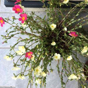 ポーチュラカは 夏に強いなぁ✨ 挿し木から花盛りに😌 ピンクの絞りに期待したけど… タネから自然に育ったのも黄色でした。 夜はぐったり寝てるのかな… でも朝になると元気✨ ポーチュラカから元気もらいます‼️