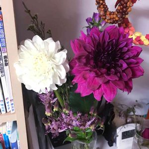 時間がなくてあまりいい写真ではないのだけども、いいダリアを手に入れたので。 秋田のナマハゲマジック(右)とカマクラ(左)! 露地栽培のダリアが花屋に並ぶ季節。今が一番ダリアの色が綺麗です。 手前のホトトギスも秋らしくていい。蕾もしっかり咲くいい奴。 ちなみに以前紹介したリンドウも元気、蕾も膨らんできたし、まだまだ楽しめそう。根っこないのにすごいなぁ