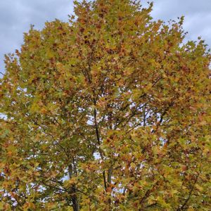 プラタナス スズカケノキ科スズカケノキ属 落葉高木 北海道〜九州まで、日本各地に植栽されている。 街路樹や庭園樹として広く利用されている。 鐘をぶら下げたような果実がなることから「スズカケノキ」との別名がある。 果実は夏にでき始め、直径4cm弱になり、冬まで木に残る。 葉はカエデに似て、掌状で切れ込みが深く、大きさは30cmほどになる。 花期4〜5月 雄花と雌花が別々の球状の房となり、葉の付け根からぶら下がる。淡い黄緑色(雄花)や赤い小さな花(雌花)が球状に集まって咲くらしいが、樹木が高く小さいため花はあまり目立たない。 花言葉は「天才」「非凡」「好奇心」