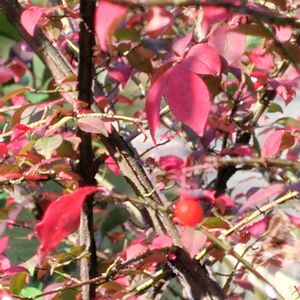 ニシキギ ニシキギ科ニシキギ属 落葉低木 北海道、本州、四国、九州に分布 低地や丘陵地、山地の山野に自生するが、紅葉が美しいので、庭木としてもよく植えられる。 和名の由来は、真っ赤で鮮やかな紅葉の美しさを錦に例えて「錦の木」となり、転訛したものである。 枝には板状の2〜4枚の翼(よく)が発達している。 葉は対生し、長さ2〜7cmの倒卵形から広倒披針形で、細かい鋸歯がある。 秋には赤く紅葉する。 花期5〜6月 淡黄緑色で小さくあまり目立たない4弁花を付ける。 果実は蒴果で楕円形をしており、紅葉する頃赤く熟すと果皮が割れて、中から橙赤色でほぼ球形をした仮種皮に覆われた小さい種子が露出する。