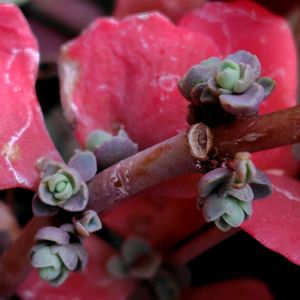 今日のお花 ミセバヤ ベンケイソウ科ムラサキベンケイソウ属 多肉性宿根草 花期10〜11月 お花ももう終わりに近づき、葉はすっかり紅葉して、よく見ると新芽が出て来ています。