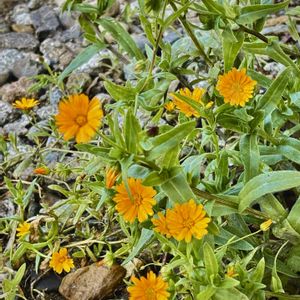 冬知らず 別名カレンデュラ キク科 原産地 地中海沿岸 名前の様に雪がかかっても咲いてます。☃️❄️ 11月頃から5月頃まで東北の花のない玄関先きで雪を被って咲いてます。🌼🌼🥰🤗 毎年種をこぼして咲き続け 失せる事ありませんね。💪🤗🎵