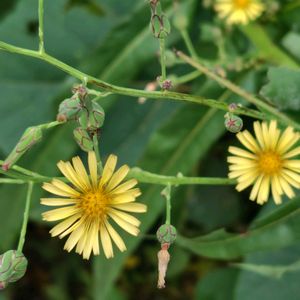 今日のお花 アキノノゲシ キク科アキノノゲシ属 一年草または二年草 和名は春に咲くノゲシ(ハルノノゲシ)に似て、秋に咲くことから付けられた。 別名は乳草、ウマゴヤシ、ウサギグサなど。 東南アジア原産で、稲作とともに日本に渡ってきた史前帰化植物。 日本全土に分布 日当たりの良い場所に生える。 花期8〜12月 高さ50〜200cm 大柄だが、柔らかで全体につやがない。 茎は互生し、上部の葉は切れ込みはなく全縁で小さい。下部の葉は羽状で大きく切れ込む。 花は淡い黄色、直径2cmほどで舌状花のみである。 種子はタンポポの綿毛を小さくしたような形をしている。