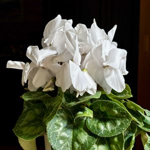 シクラメン ピュアホワイト サクラソウ科 球根植物 原産地 地中海沿岸 まるで雪の様な純白のシクラメン 白一色だけど華やかですね〜🤗 頂きました🙇🏻♀️🥰