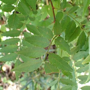 カラスザンショウ 最後に、おまけのカラスザンショウ。 高木ですが、まだ、小さくて、2メートル半くらいしかない木でした。 葉は、奇数羽状複葉。小葉は、7〜15対。葉を揉むとサンショウの香りがするらしいです。 (試していません。💦) 高木なので、下から、見上げる感じです。 (①②) 幹には刺がいっぱいです。 まだ幼樹なので、若い感じがします。(③④) この木は、冬芽で、わかりました。 冬に「こんなところにいたのねー」と感動したんです。でも、花は見られなかったー💦咲いたのかな。 これで、サンショウ仲間コンプリート終了。楽しかったです。 10.17