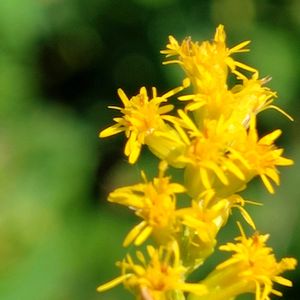 セイタカアワダチソウ キク科アキノキリンソウ属 多年草 北アメリカ原産 日本には、切り花用の観賞植物として、明治時代末期に導入された帰化植物である。 北海道の一部から沖縄まで分布 河原や空き地に群生する。 花期10〜11月 茎は下の方はほとんど枝分かれがなく、先の方に花を付ける枝を多数出す。 葉は披針形で、先端は伸びて尖り、長さ6〜13cm.幅1〜2cm.3本の葉脈が目立つ。 茎や葉の全体に短くて固い毛が多くざらついている。 濃黄色の小さな花を多く付ける。 花序は高さ10〜50cmの円錐花序となり、個々の枝に小さな頭花を総状に多数付ける。 🏷️月曜日にビタミンカラー に散歩させていただきます。
