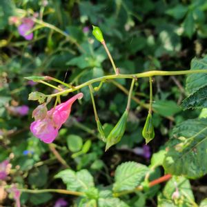 ワタラセツリフネソウ ツリフネソウ科ツリフネソウ属 一年草 日本在来種 本州の栃木県、群馬県、埼玉県、茨城県、千葉県分布 平地の湿地に生える。 渡良瀬遊水地で発見され、2005年に新種として発表された。 花期9〜10月 ①花と果実(10/2 撮影) ②〜④果実と種(10/19 撮影) 果実は長さ1〜2cmの披針形で肉質の蒴果、熟すと軽く触れただけで、パチンと音を立てて弾ける。5片に裂開し、裂片は渦巻き状に巻いて種子を飛ばす。 果皮がまだ緑色でも、中の種が熟していれば弾ける。