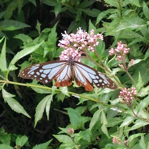 フジバカマとアサギマダラ キク科ヒヨドリバナ属 多年草 中国と朝鮮半島原産 日本には奈良時代に薬草として渡来。 花期8〜10月 フジバカマの仲間にはアサギマダラという蝶のオスが好んで訪れる。 まだよく解明されていないが、フジバカマに含まれる物資「ピロリジアンアルカロイド」の摂取が性フェロモンの分泌に必要だと言われている。 アサギマダラは旅する蝶としても知られ、台湾や東南アジアなどから日本にやってくる。中には2500kmも長旅をして日本に飛来してくるものもいる。 ここ、三ツ堀里山自然園は、数年前からアサギマダラが飛来するのを期待して、ヒヨドリバナやフジバカマを植栽しています。 今年は10/13に初飛来し、撮影した10/20 は3頭見られました。