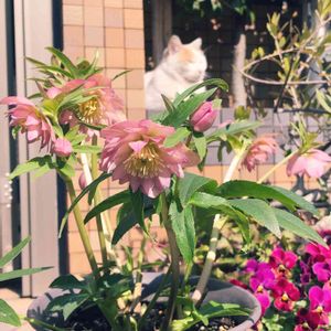 ご無沙汰しております(_ _*)🌸🐱 自家採取の種まきっ子、年末頃から 咲き始めましたヾ(*‘ω‘ )ノ♪̊̈♪̆̈ 多肉棚の上でビオラの成長を楽しみに 見守ってきた(?)通い🐱こまちゃん、 次はピンクが咲いたニャとチェックかな? クリスマスローズの蕾もたくさんついて くれました(*^^*)