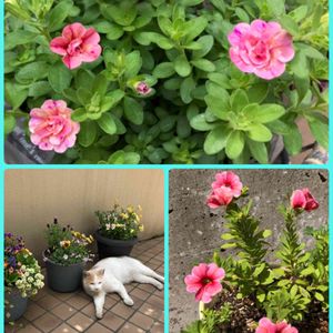 上は昨年咲いていたカリブラコアです🌸 ダメ元放置でしたが、冬を越えて2日前から咲き始めました😊でも八重だったのが一重になってる💧 開花を確認したので、切り戻して枝数を増やそうと思います♪̊̈♪̆̈ 最高気温26度あった一昨日の通い🐱こまちゃん♪̊̈♪̆̈この前まで陽当たりを探していたのに、日陰好きに変わりました😊