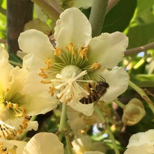 みつばち🐝🐝🍯 ぶ〜~ん🐝🐝🐝 キウイのお花も満開です