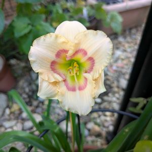 ■Hemerocallis 'Siloam Baby Talk' ・ ヘメロカリス シロアム ベビートーク 2021年の夏に、沖縄のハンズマンで見つけて持って帰ってきたヘメロカリス、やっと咲きました。鉢が小さくてパンパンなので植え替えないと。 2枚目は、ユッカの品種不明種。過去postを遡るとフィラメントーサ カラーガードだと。カラーガードと称されるものも何パターンかあり、よくわかりません😝3枚目は、移動させてブラヘア アルマータ。成長のんびりでなかなか大きくなりませんが、少ししっかりしてきた感はあります。スリットから出てきてた根は、いつも切るか切るまいか悩ましいです。 最高気温31℃、最低気温22℃