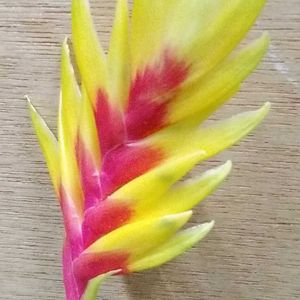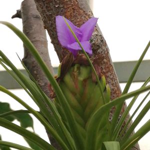 【ハナアナナス】《パイナップル科》 花言葉 「私にとってあなたは最愛の人です」 「増す愛情」 紫の目立つ花をつける。 この属のものは葉の表面に毛が多くて空中の湿気を吸収する、 いわゆるエアープランツが多いが、本種は比較的普通の植物っぽく、 鉢植えで栽培される。