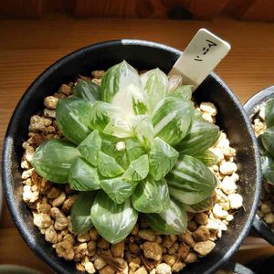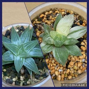 今日のハオルチア🍀は「マリン」です。 仔株と数枚に斑が入ってます。この株は、比較的大きくどっしりしている感じで、もう少し大きな鉢に変えてあげようかなと。 GWは全株をメンテナンスしてあげよう。お正月に葉挿し目的でもぎ取った葉から芽が出ているので、並べて植えたら大量に増えるけど、置き場がないので悩む。(*^^*)
