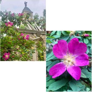 ローズハマナス(コンサレッド) ローズハマナスとは、北海道の花である ハマナスとバラを交配して作出された従 来より花数の多い新品種の総称です。 これらの品種は北海道立林業試験場緑化 樹センターにおいて、“北海道ブランド” となる新しい緑化樹を作出する目的で、 1991年より開発が進められてきました。 開発された新品種は4種類 (コンサレッド・ノーストピア・北彩・ プリティーシャイン)で、ハマナスの短 所である開花数が少ない点や、トゲの多 い点が改善されています。 これらの品種は、北海道によって2005 年、農林水産省に品種登録されています。 以上、ネット情報 花言葉はハマナスのを選びます。 花言葉 あなたの魅力にひかれます💗 真鍋庭園リスの教会にて🌸