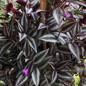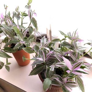 💕大好きなトラデスカンチア💕 昨年8月にヨレヨレのこの子を迎え入れ大事に育てたらモリモリになりました。 ちぎれても水差しすれば、根っこがすぐに出てきて、植えればモリモリになる素晴らしい葉っぱ‼️ 紫色の葉っぱが何とも言えず綺麗😍 ちらほらと咲くお花も可愛いですよ💕