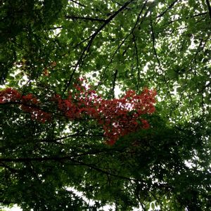 公園の木を上見て歩いていたら 見つけちゃいました✨✨ 緑の木の中に1本の枝だけもみじが赤く 紅葉??🍁🍁🍁 緑と赤のコントラストに少しだけ この一瞬、光があたってくれました✨✨ とても綺麗でした😌 自然に感謝!!