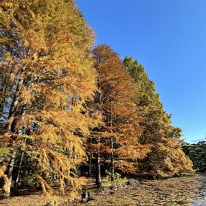 おはようございます♪ 初冬の神代植物公園の散策🍂🍁 ①②🍂落羽松(ラクウショウ)🍂 だいぶ色づいてきました ③パラグアイオニバス まだ蕾があり寒いのに咲いてくれるのでしょうか