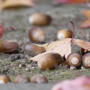「落ち葉とドングリ」 お寺の階段に落ちていました。 🏷木曜日は木の実