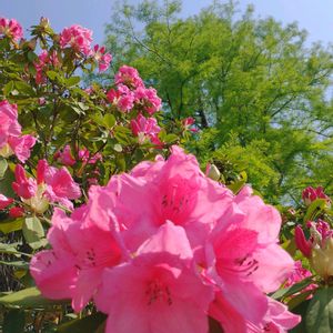 今日のお花🌸シャクナゲ 信楽の陶芸の森で〜ちょうど2年前の5月でした 鮮やかなピンクの花が新緑の林に映えてました💗💚 信楽と言えば、🦝タヌキの置き物(笑)🥳✌🏼