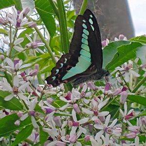 今日のお花💜🤍センダン栴檀(センダン科)に、アオスジアゲハのお客さん🦋 栴檀の花は小さくて、遠くからは ボォーと、けぶってるようで〜💜🤍🌿良く見れば可愛いな🌿🦋 ちなみに『〜栴檀は双葉より芳し』と言う、センダンは白檀(香木)のことだとか😉 どうりで〜 ず〜っと、この木の事と思ってたけど、匂い嗅げないし??と〜(背の高い木だから〜)😅