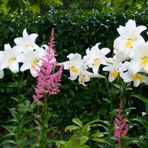 テッポウユリと アスチルベ ピンクのはなが、百合の白さをいっそう引き立てて〜素敵💓 大泉緑地公園⛲にて