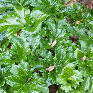 🏷️今日のお花 アカンサスモリス(キツネノマゴ科)の常緑の🌿葉っぱ 別名 葉アザミと言われるのわかる〜でも関係なし! 大きくてツヤツヤの冬の姿も 堂々として かっこよかった〜 今年1月 慶沢園にて